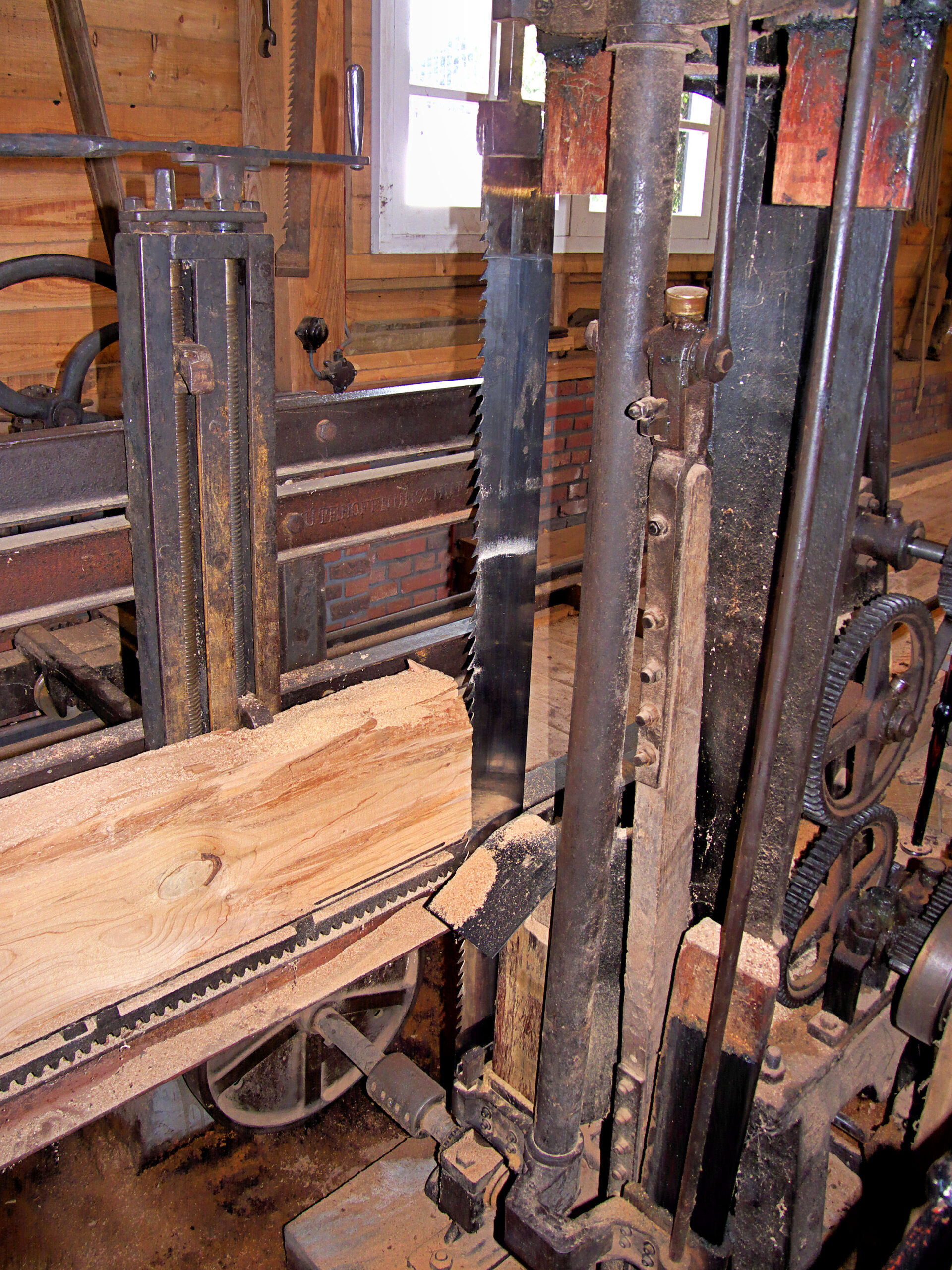 Behalve olie slaan en meelmalen, kan de molen sinds 2006 ook houtzagen. Dit gebeurt met een meer dan honderd jaar oude machine die door een vernuftig stelsel van kamwielen en riemen door de molen in beweging wordt gezet.